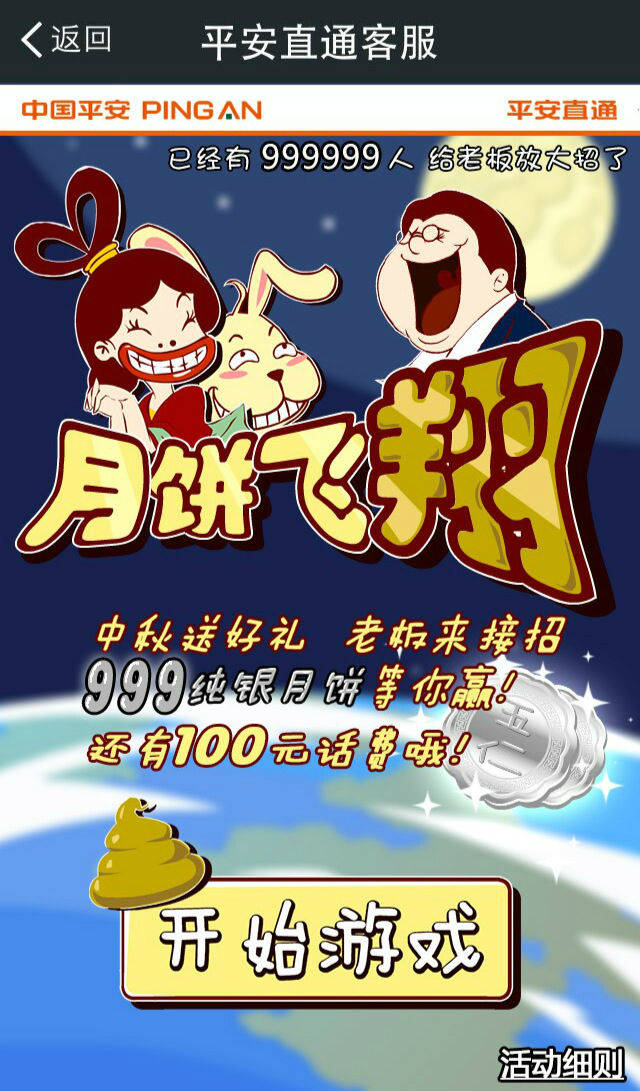游戏的名字一出来便让很多人大跌眼镜,因为众所周知,在网络语言的语境下,“翔”字已经成为了“屎”的代名词,而平安保险集团居然肯如此放下身段,允许这种 限度的恶搞看来也是蛮拼的。在移动互联网时代,很多大公司已逐渐开始明白,用曾经那种“端”着的架势去接近用户的手段已不流行,放下姿态,学会娱乐大众才是当今的主流。平安集团此次给那些在营销上依然还循规蹈矩,充满保守和腐旧气息的大公司做了一个很好的榜样,值得鼓掌!