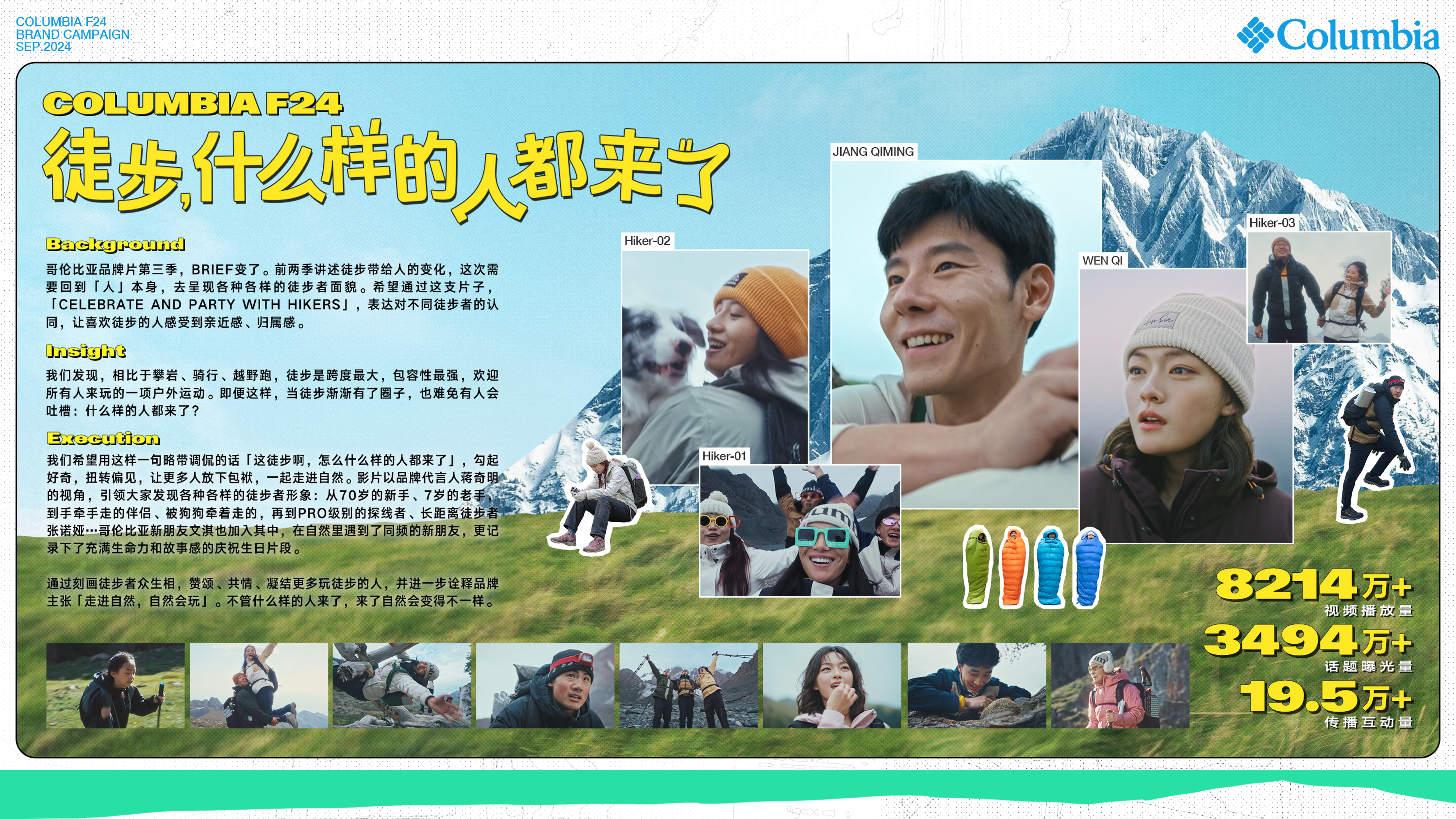 背景:2023年9月,哥伦比亚推出了新的品牌口号:“走进自然,自然会玩”,希望更多人能以轻松的姿态走进自然,走一走,看一看,更要玩一玩。