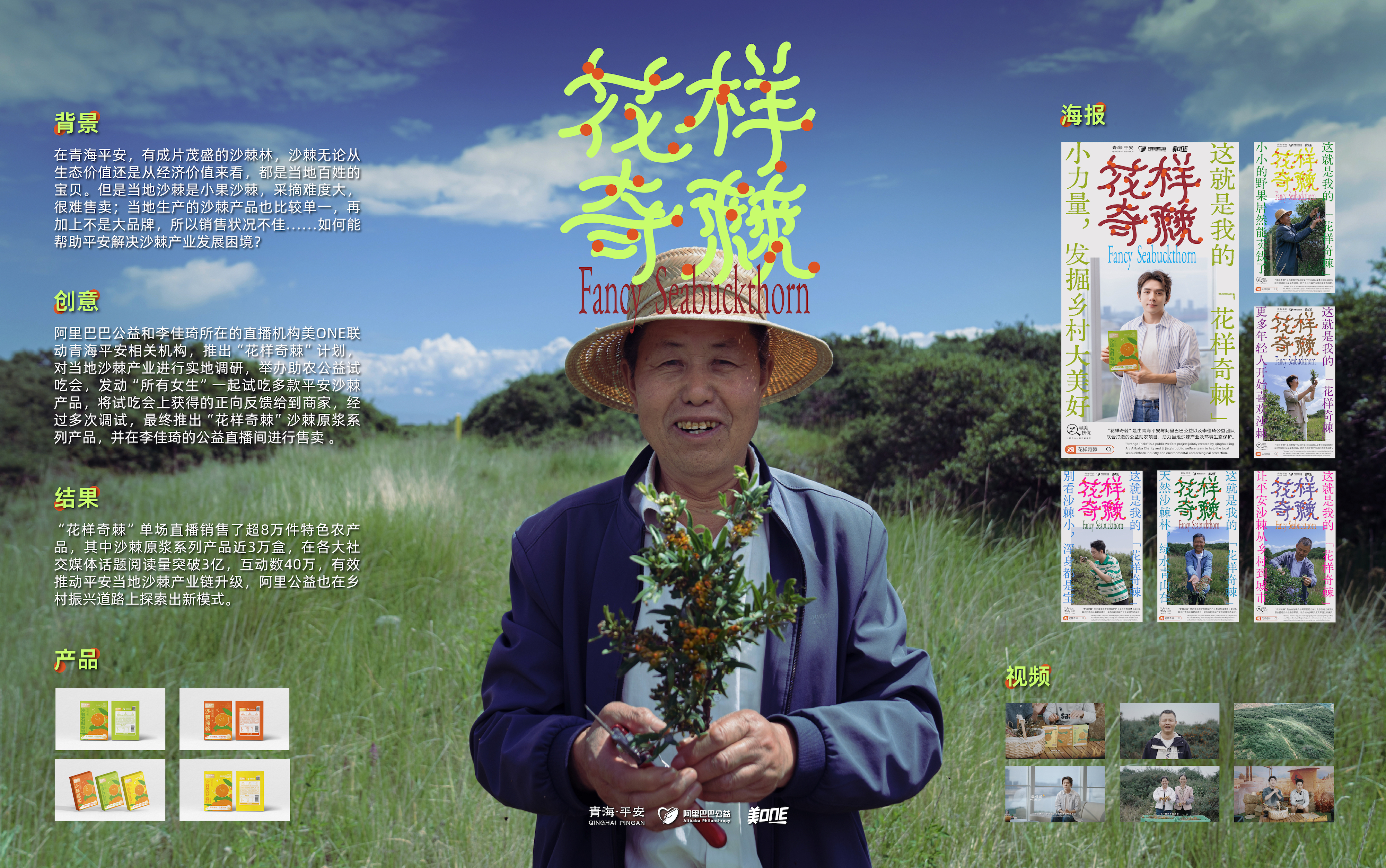 常识创意COMMON DES/GN工作室通过策略、创意、视频、平面设计、活动和社交媒体内容打造等方式,助力阿里公益×美ONE×青海平安“花样奇棘”计划,提升青海平安沙棘销售状况,促进沙棘产业链升级;