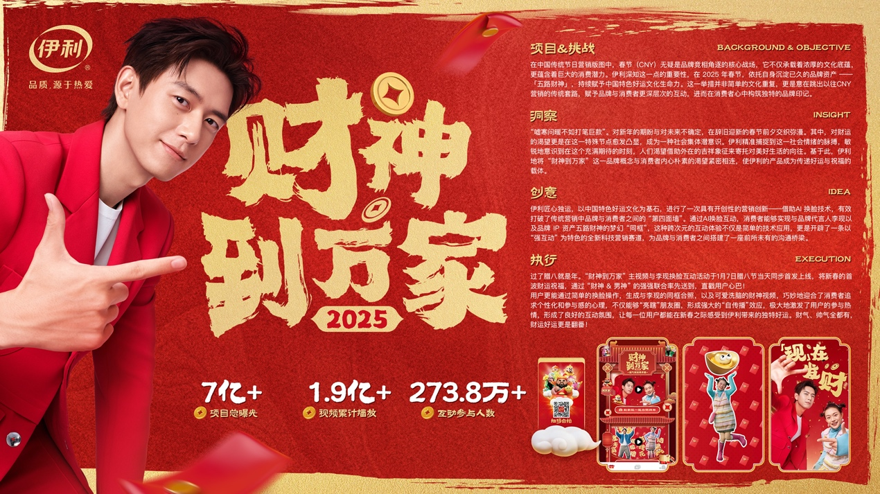 2025年春节,我们帮助伊利激活沉淀已久的品牌资产——「五路财神」,让#财神到万家#,持续赋予中国特色好运文化生命力。
