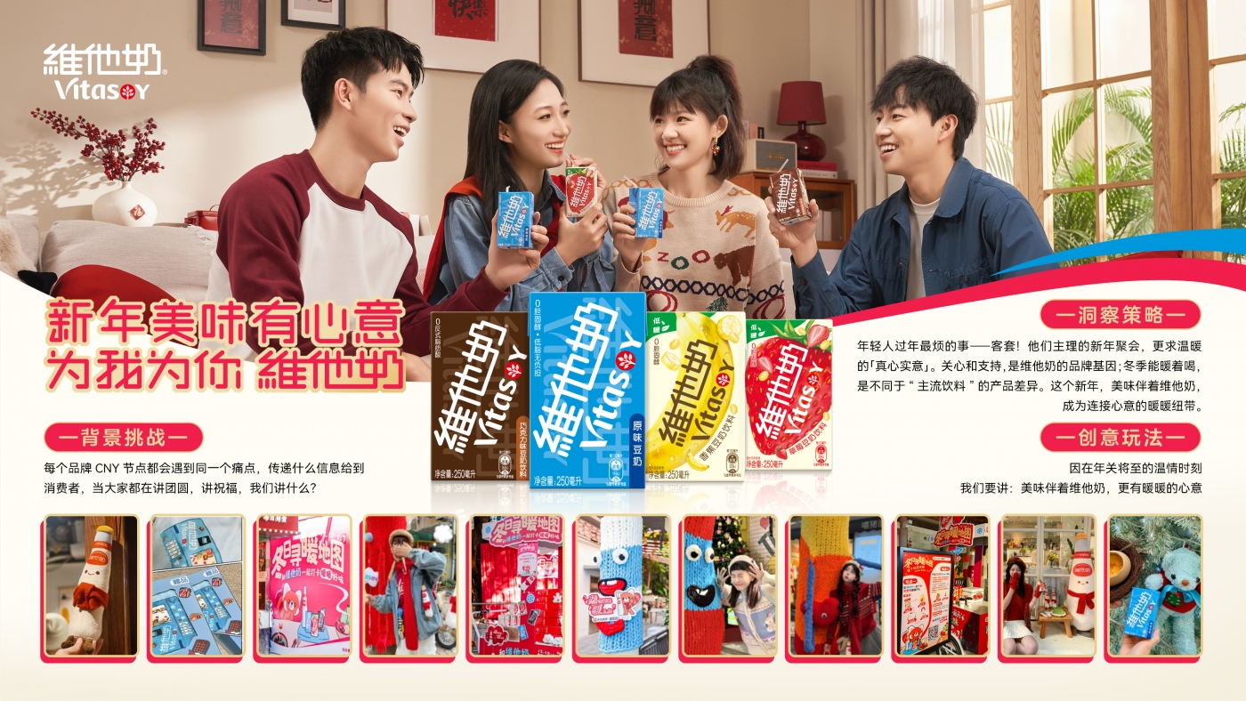 因此,在年关将至的温情时刻,我们要讲:美味伴着维他奶,更有暖暖的心意。