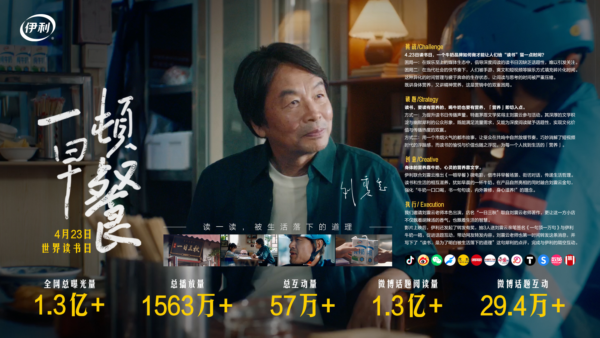 4月23日,世界读书日,伊利官方账号发布《一顿早餐》微电影,该片由作家刘震云主演,故事从他走进早餐店吃早餐开始,以充满烟火气的写实镜头语言,讲述读书的道理。有的人在追逐梦想,有的人在为生活奔波,生活虽苦,但孩子眼中充满好奇,生活本身就是一本书,每个人都在里面讲述着自己的故事。