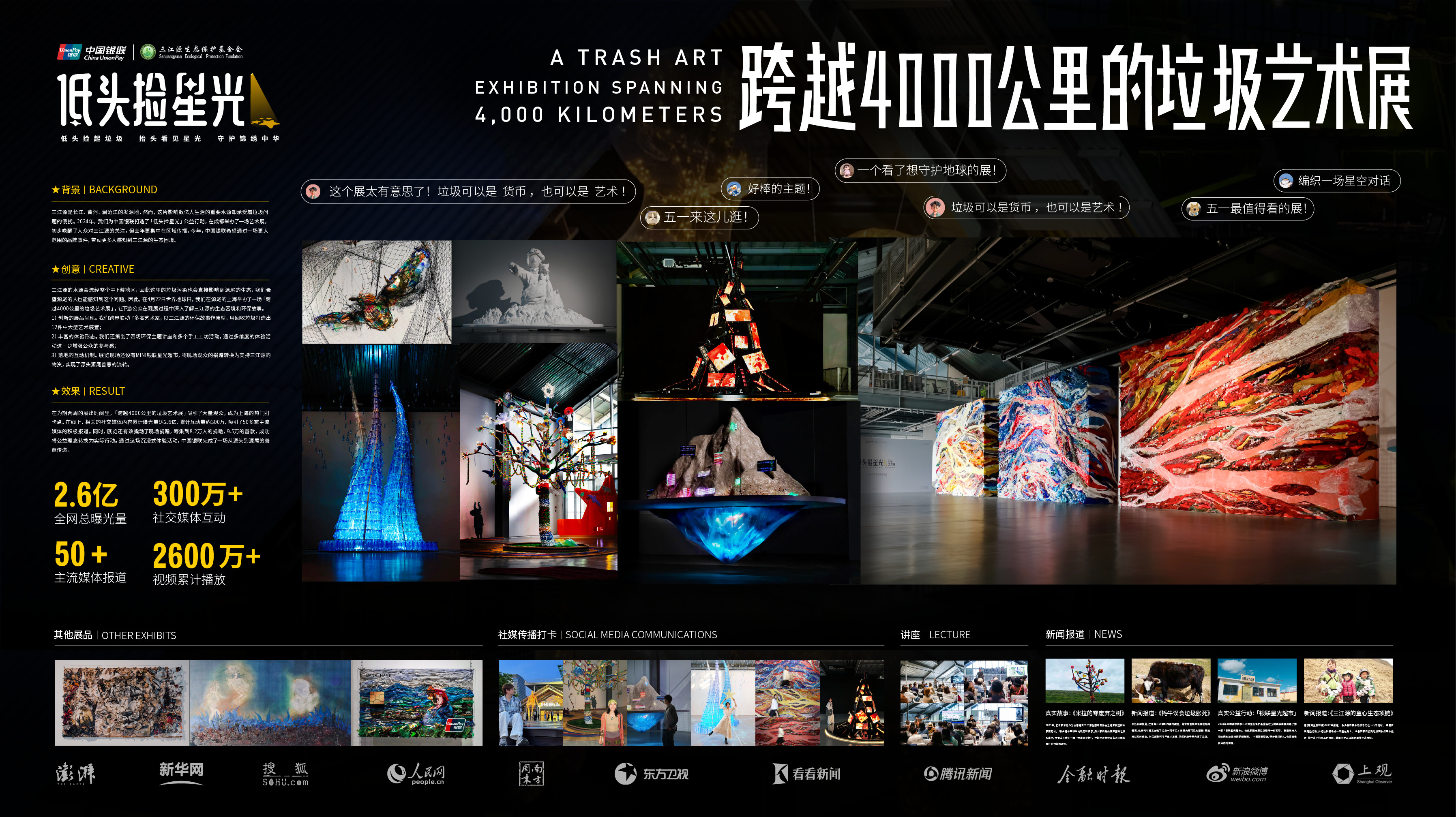 结果二:「跨越4000公里的垃圾艺术展」成为上海热门打卡点,社交媒体相关内容累计互动量达300w+,为源头源尾搭建了一个对话的窗口,撬动了更多下游公众对三江源生态危机的关注和行动。