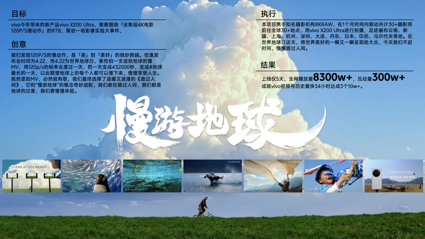 诶?等等!地球最长的一天?慢版《浮生一日》,客户提到4月22日是世界地球日……恰好又时植vivo X200 Ultra的发布会……怎么让vivo X200 Ultra的「全焦段4K电影慢动作」找到一个当下的切入点?!最终的IDEA在此刻成型,我们想给地球拍一支慢MV。