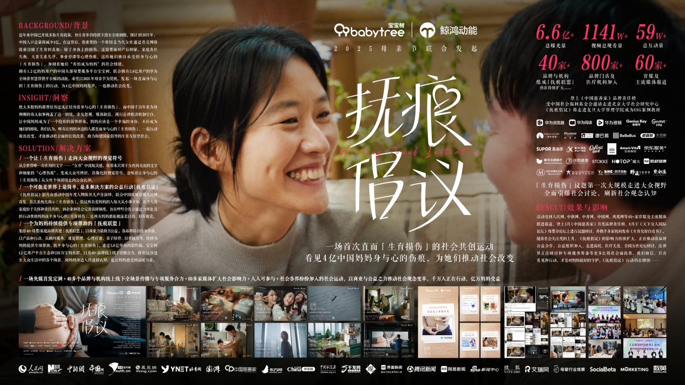 拥有1.2亿妈妈用户的中国头部母婴服务平台宝宝树,联合拥有5.8亿用户的华为全场景智慧营销平台鲸鸿动能,希望以2025年母亲节为契机,发起一场直面身与心的「生育损伤」的行动,为4亿中国妈妈发声,一起推动社会改变。