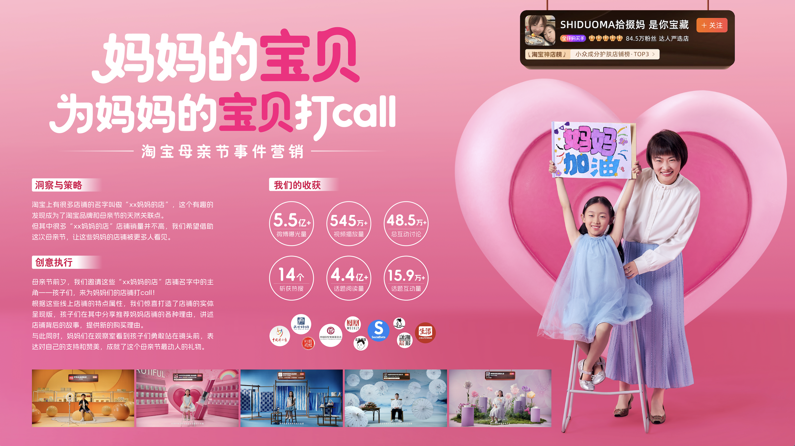 项目亮点:借助母亲节活动,让更多认真经营的妈妈小店被广泛关注和被看见,同时也吸引用户重新回淘留淘。此外借助有温度有的营销活动也大大提升了品牌好感度和品牌社会责任形象。