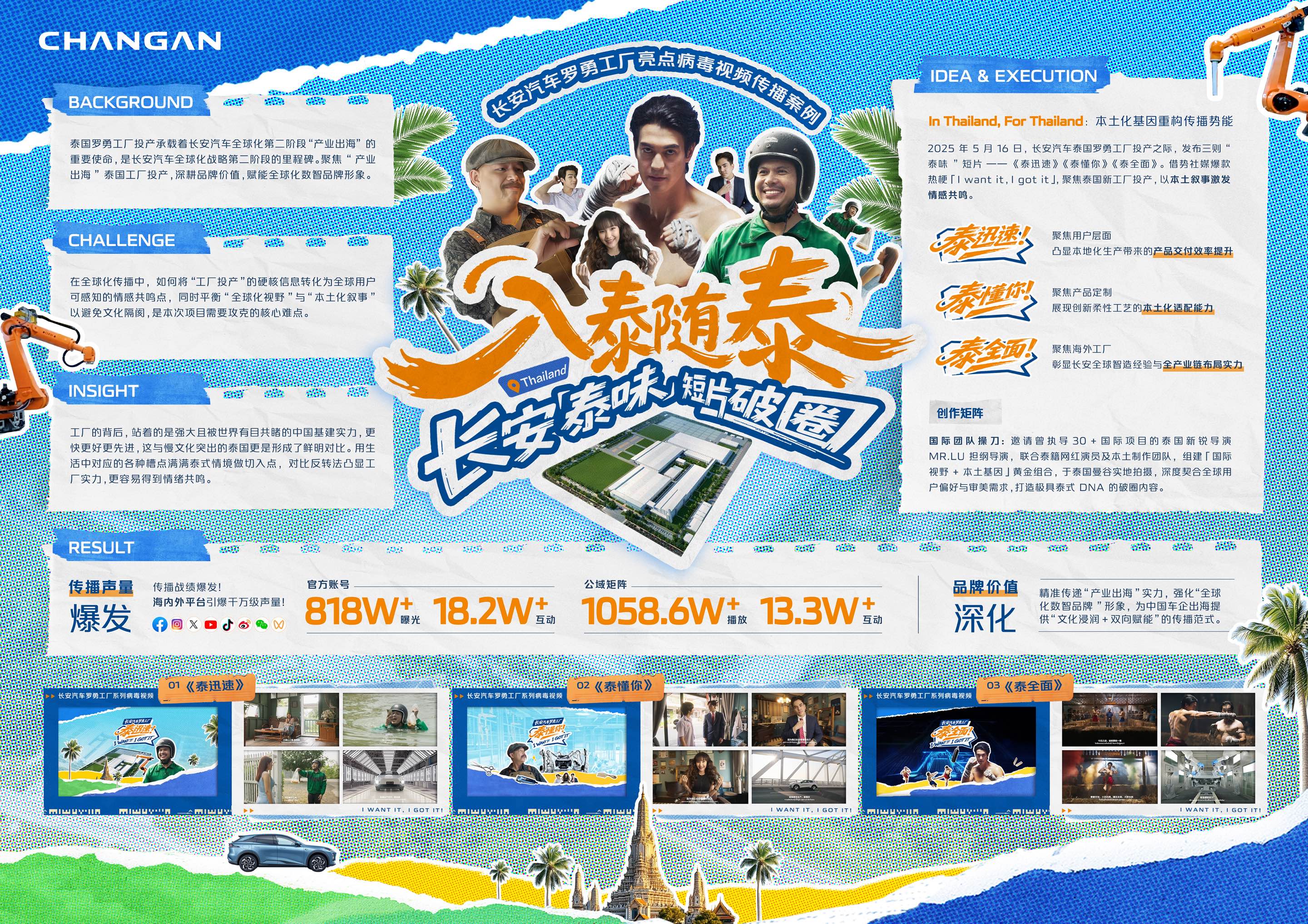 从实际执行效果来看,该案例在海内外均产生显著影响。对于国内观众,三则短片成为中国品牌自主建厂、文化融合的有力注脚,激发民族自豪感;在海外市场,则进一步强化长安作为全球品牌的形象,实现内外联动的 “1+1>2” 传播效果,深度践行 “In Thailand, For Thailand” 的战略理念,推动品牌从单向输出向全球对话转型。