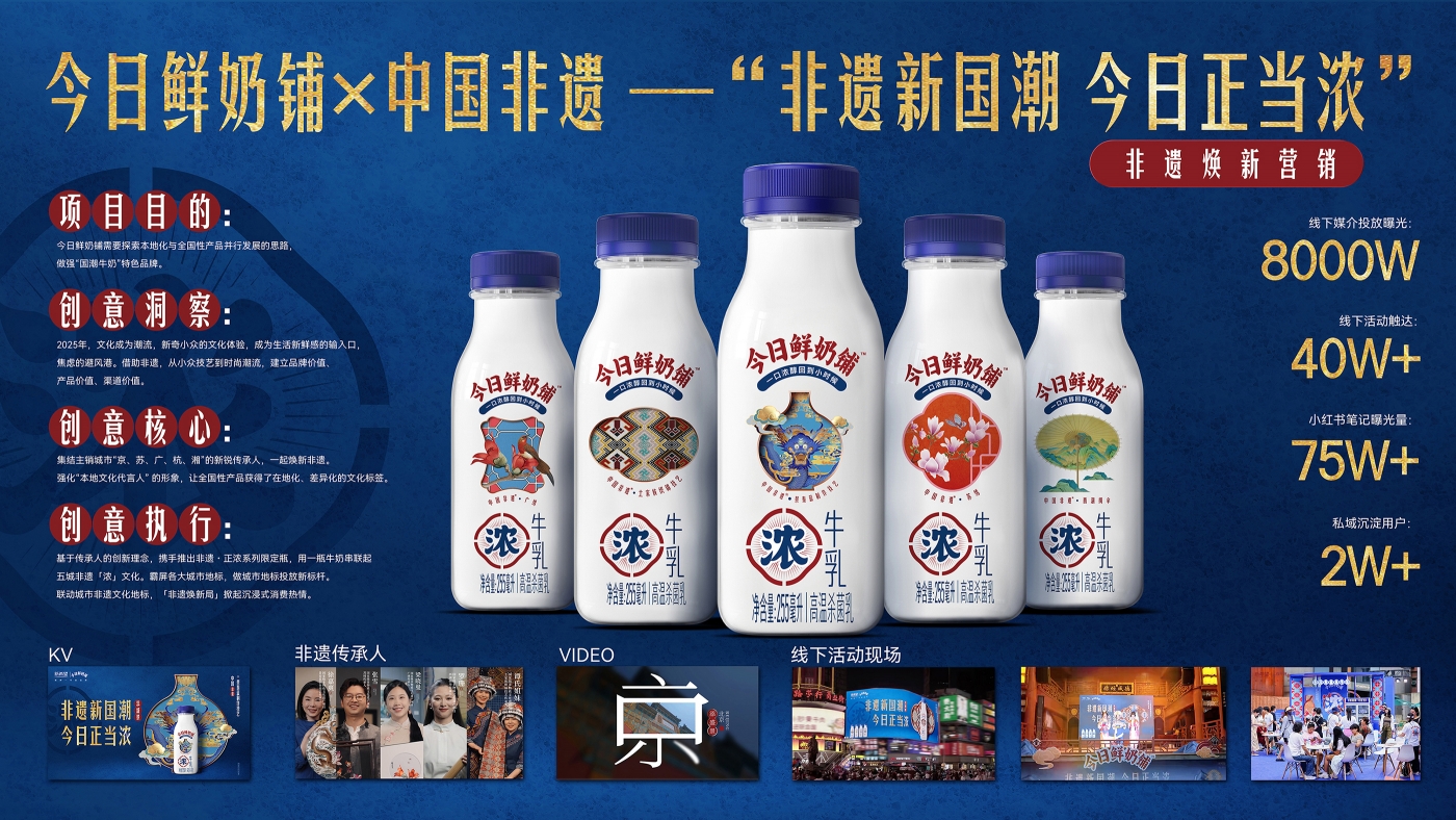 今日鲜奶铺×中国非遗——非遗跨界营销,为品牌带来了更高的关注度和话题度,让非遗焕新真正 “活” 在当下。今日鲜奶铺和消费者一起,传承浓浓东方美,焕新浓浓好滋味!