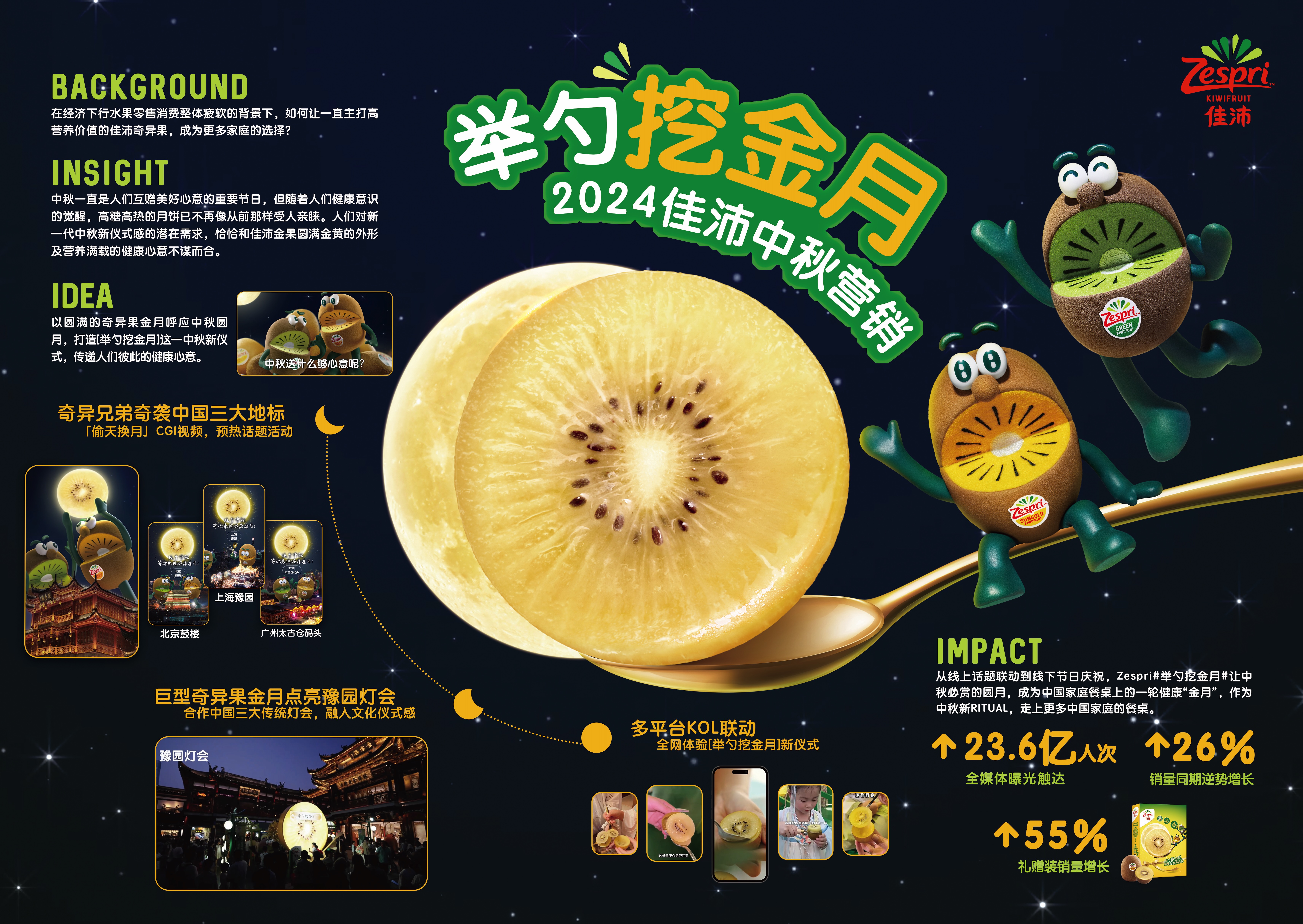 借助“举头望明月”“举杯邀明月”等经典诗词意象,佳沛将传统文化注入现代化的互动仪式,有机会创造品牌专属的中秋“新仪式”。