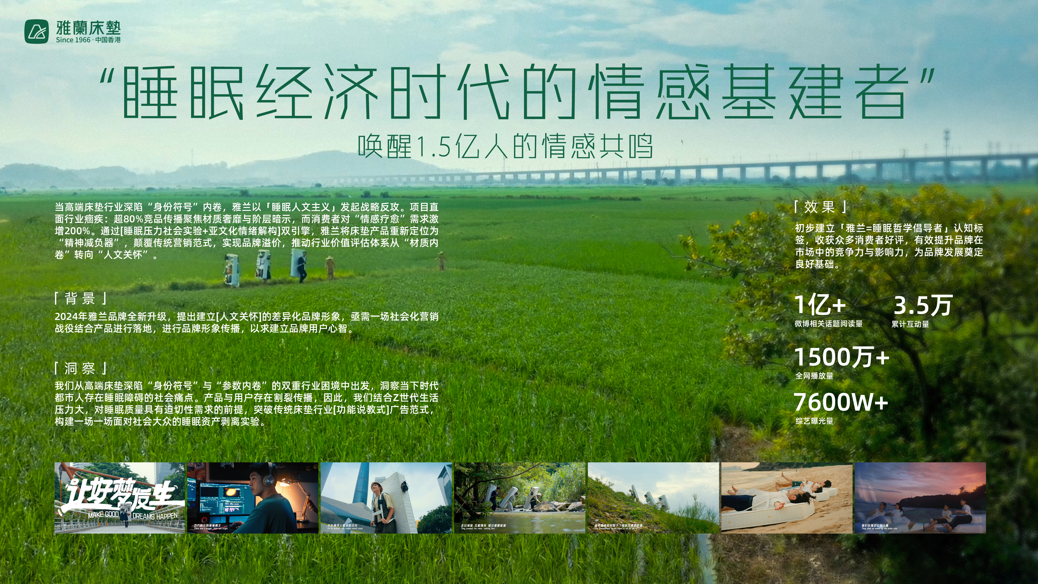 在这个充满挑战的现代生活中,雅兰通过柔和的叙事、深刻的情感共鸣、以及科学的健康理念,为每一个消费者提供了更优质的睡眠选择,成功传递了“让生活多一点幸福”的品牌理念,也让我们意识到,真正的幸福生活,源自每一场好梦。