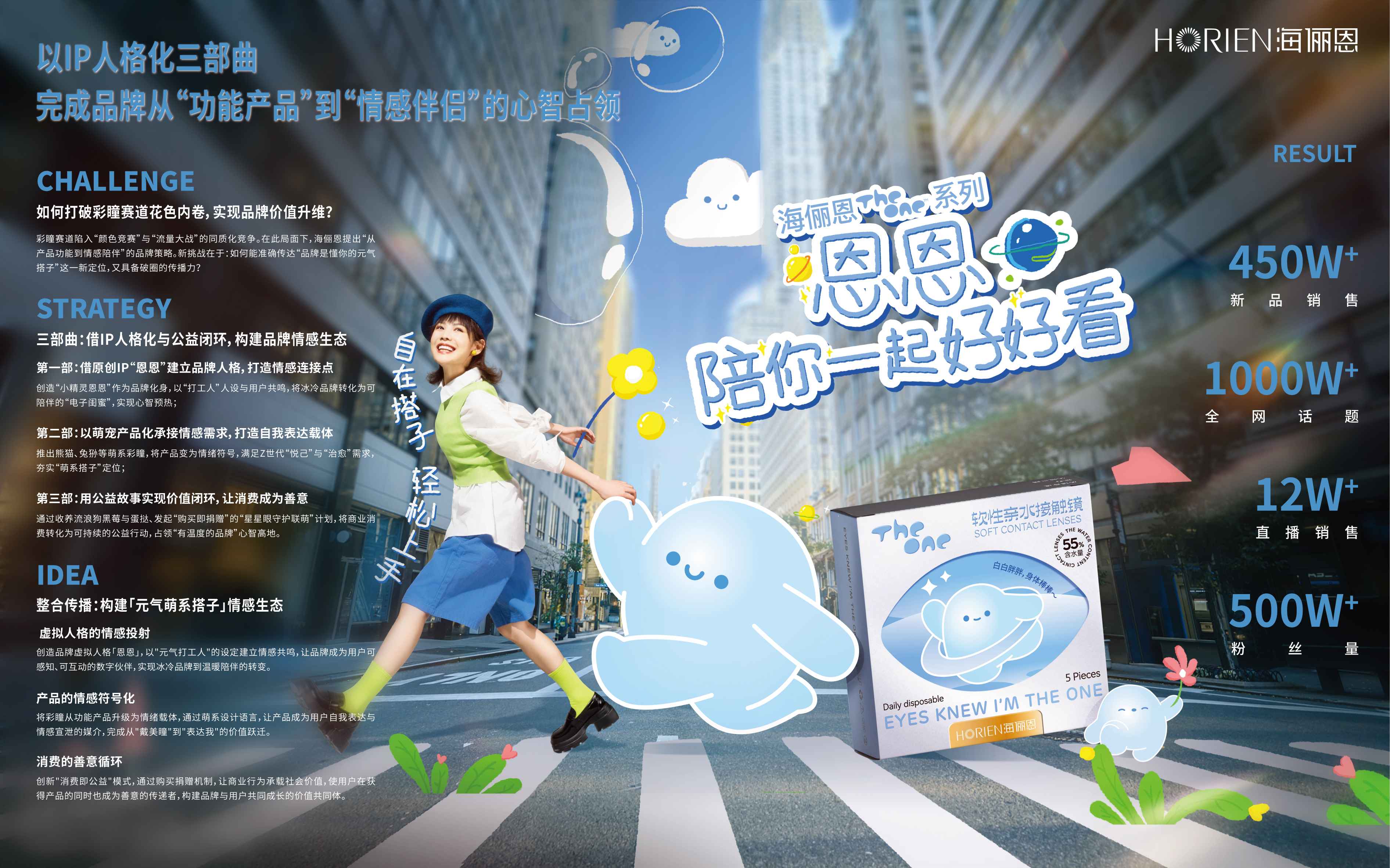 如果说过去的海俪恩是通过「九州寻色」系列和彩瞳冠名国风大典,打开了年轻圈层的第一扇门。那么进入2024年,它选择了更长远的道路:从单点的文化营销,走向系统的“年轻化生态构建”。这一次,创意不只是好看,而是要好感;不只是产品,而是要陪伴。通过“IP人格化 × 萌宠产品化 × 公益闭环”,海俪恩既满足了年轻人对“悦己、治愈”的期待,也用公益让品牌多了一份责任与厚度。在年轻消费者心里,它不再只是“好看的彩瞳”,而是一份“带着温度的礼物”。