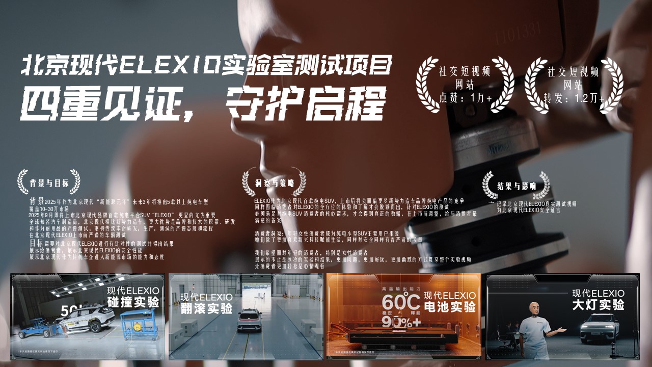 展示给消费者,展示北京现代ELEXIO的安全性能。展示北京现代作为传统车企进入新能源市场的能力和态度。