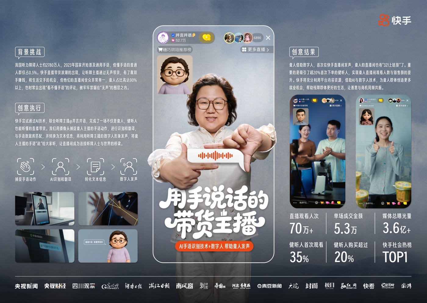 1、事件创新:听障主播首次借助“AI技术+数字人”在快手直播间“发声”。