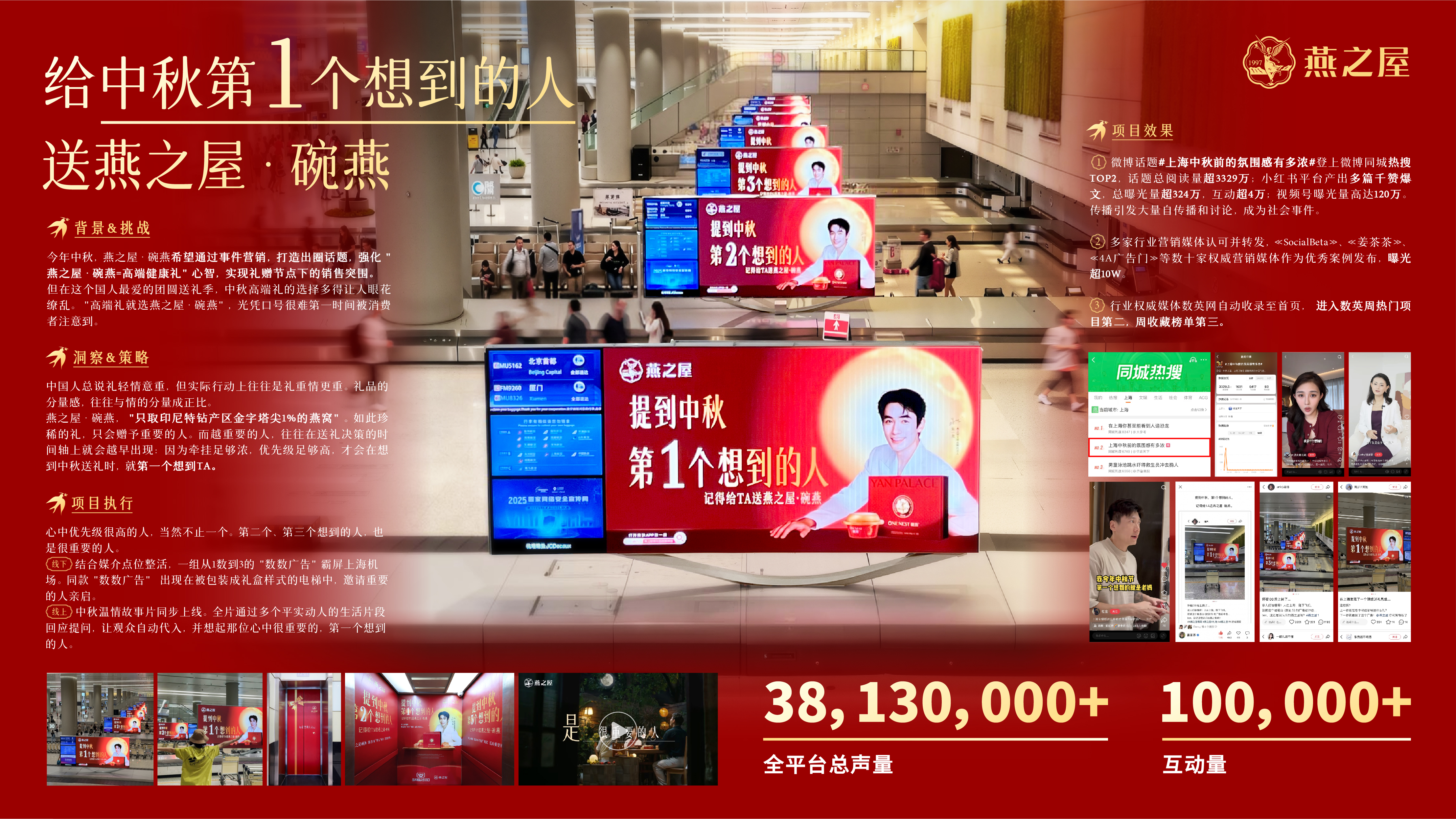 燕之屋,27年专注高品质燕窝。2025年围绕中秋的营销节点,燕之屋推出碗燕中秋限定款礼盒,希望突破传统滋补品“老气”标签,通过事件营销,打造出圈话题,强化“燕之屋碗燕=高端健康礼”心智,实现礼赠节点的营销突围。